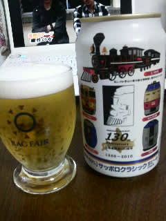 2010-09-28 一緒に買ったモノは。 ごにょごにょ・・・独り言。 サッポロビールクラシック。(北海道限定だべさ)手にとって、裏のラベルを見たら「北海道鉄道130周年」の文字。・・・コレは、北海道に来た鉄道マニアの皆さんにJRで移動する際には、窓際にセッティングして欲しいアイテムですな。