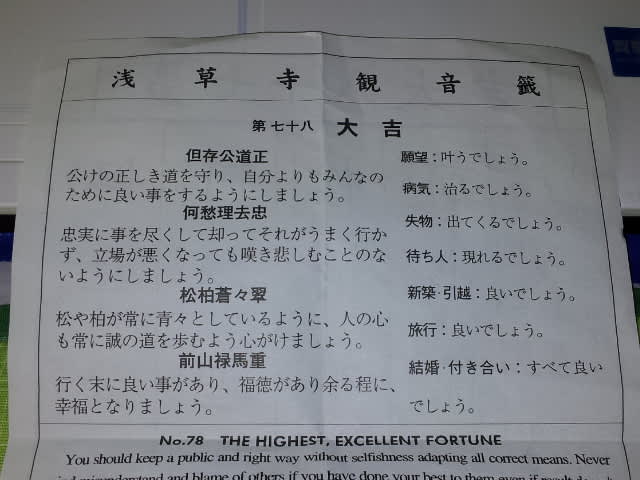 したっけ、今年の2月に浅草寺で引いたおみくじを発見。