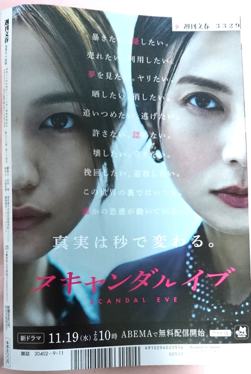 そんなドラマの告知を週刊文春でやるなんて、ただただスゴイなぁと・・・