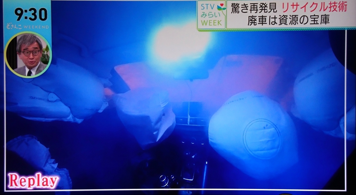 今回、特別に車のエアバックの処理をするところを見せてくださいました。