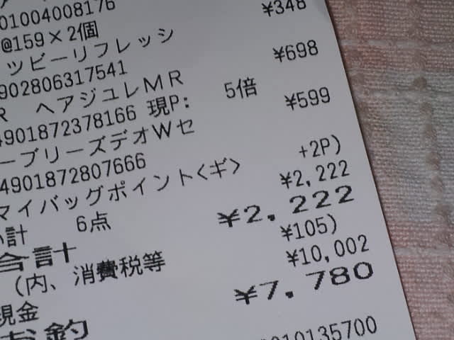 んで、今日レジで精算したっけ、合計金額がこんな数字だったべさ。