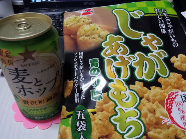贅沢初摘みの「麦とホップ」くん&「じゃがあげもち」くんのコンビで、あべっちの週末を癒してもらっておりまするん。