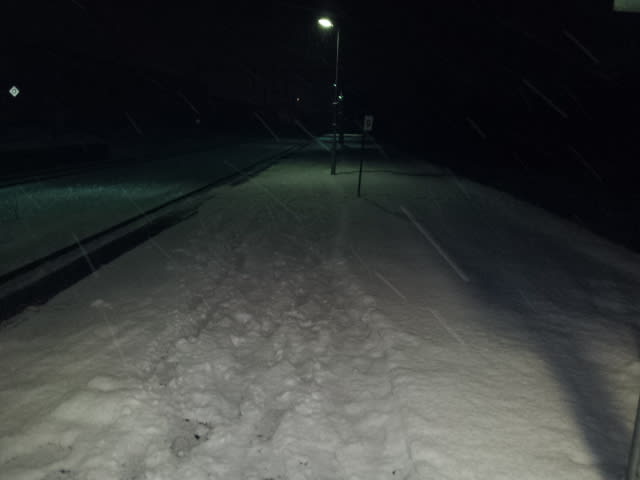 乗る電車を待つ間も雪。しかもちょっとベタ雪で重たいのよね、すぐ融けてくれるのはイイんだけどさ。