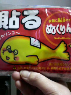 2008-11-26 今日買ったモノ2 ごにょごにょ・・・独り言。 今朝は、な~まら冷え込みました。(;_;) 寒さはこれからが本番なんだけど、やっぱり強い味方が欲しいなっちゅうコトで。 帰り道のドラッグストアで、即買い!! 内緒で忍ばせて、ぬくぬく気分だべさっ。v(^○^;) 使っているコトを言わなきゃイイんだも~んね。(^-^)v まさに、日本最北の北海道。 暑さは何とかなるけども、寒さ対策は必須だもん。
