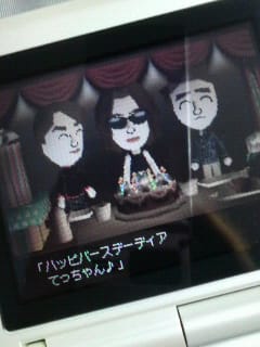2010-04-24 あべっちのぼや記。その6。 ごにょごにょ・・・独り言。 ゴスペラーズのてっちゃん、お誕生日おめでとう!(^◇^)あべっちのトモダチコレクションの中でもお祝いムード。今日は、みんなで飲んでいるんだべか?てっちゃんも「三十路ラストイヤー」っすねぇ。・・・チュートリアルの徳井さんと大泉洋ちゃんがバースデーソングを歌ってます。(似てねー!!!)