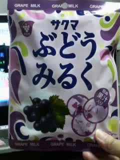 2009-08-26 ぶどうのみるく。 ごにょごにょ・・・独り言。 「いちごみるく」は、よく見かけるのですが「ぶどうみるく」は初めてです。(゜o゜)「ぶどう」と「ミルク」の組み合わせって・・・ヨーグルトしか思いつかないべさ・・・(~_~;)