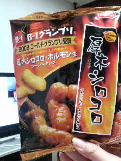 2010-09-22 B-1グランプリのお菓子。 ごにょごにょ・・・独り言。 今日は残業ナシにして、とっとと帰宅。 1日立ちっぱなしでバタバタどたどた。(-_-;) 明日は休めるってコトで、お菓子を買って来ちゃったべさ。(^-^) つい先日、B-1グルメが賑わってましたね~\(^o^)/ 今日はビールも一緒にまったりするぞー!!!