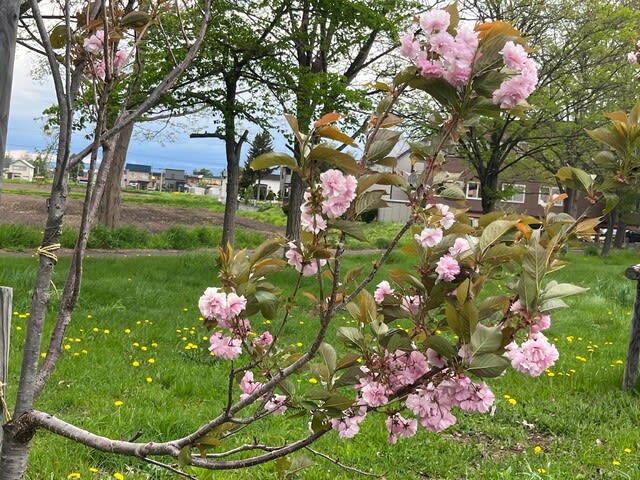 これも豪雪地帯ゆえに、雪の重みで枝が徐々に曲がってしまったようで。