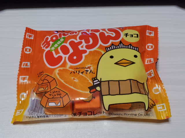 愛媛の今治市のキャラ、バリイさんのチロルチョコ。