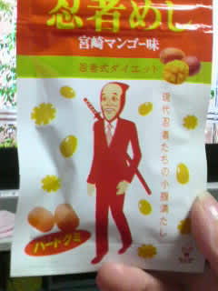 2009-05-13 東国原知事・・・だよね? ごにょごにょ・・・独り言。 今日は残業はヤメにして、とっとと帰宅。^_^;ドラッグストアに寄り道して、ティッシュを手にした時。ふと、お菓子コーナーに立ち寄ったら。およよっ?!お菓子コーナーで東国原知事、発見!(゜.゜)・・・知事になってもカブリものっすか。(^_^;)宮崎県のPR頑張ってますな。